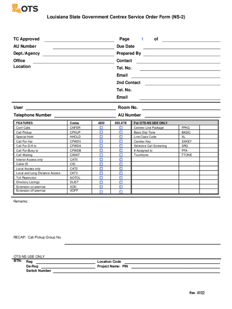 Click for Instructions Louisiana State Government Center Service Order Form (NS2) Use F1 for Help or Click Here for Form Instructions in .pdf TC ApprovedPage1AU Number Dateset./AgencyPrepared Office