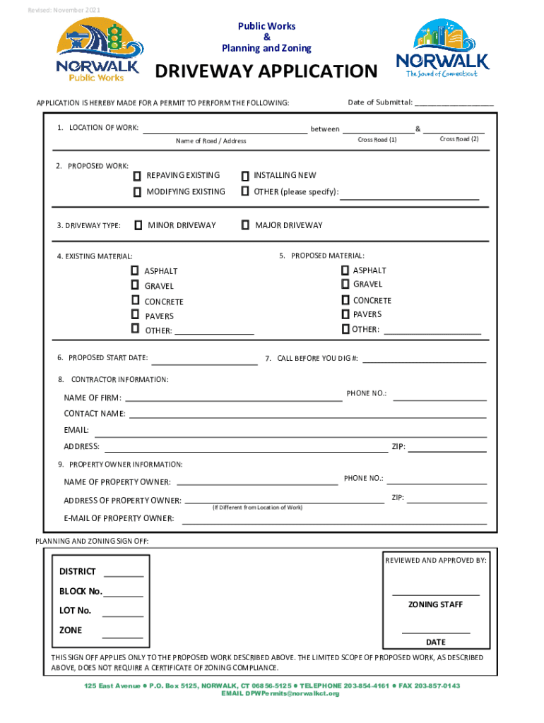 Property owners who wish to construct or modify a driveway on their property typically need to fill out a driveway application.