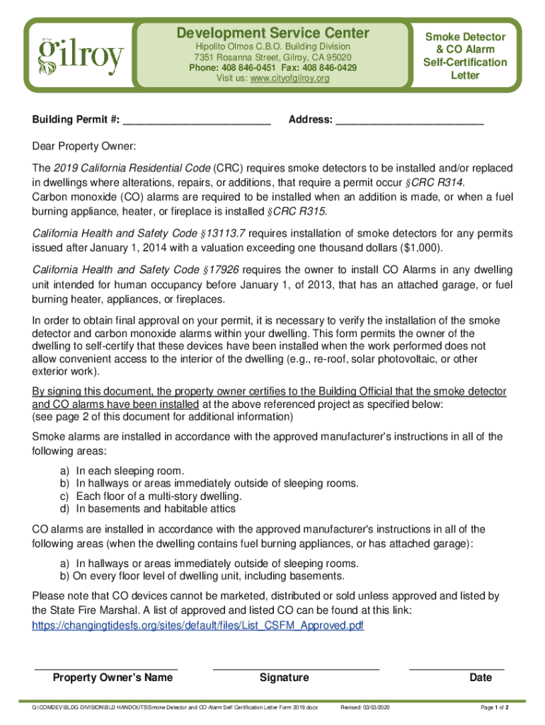 Visit us: www.cityofgilroy.orgBuilding Permit #: ___Smoke