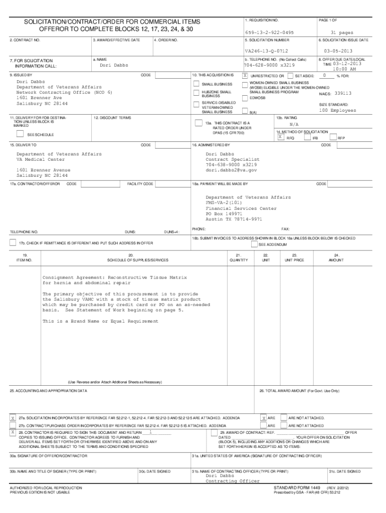 Get the free GSA Contract Number GS03F086GA Standard Form 1449.pdf