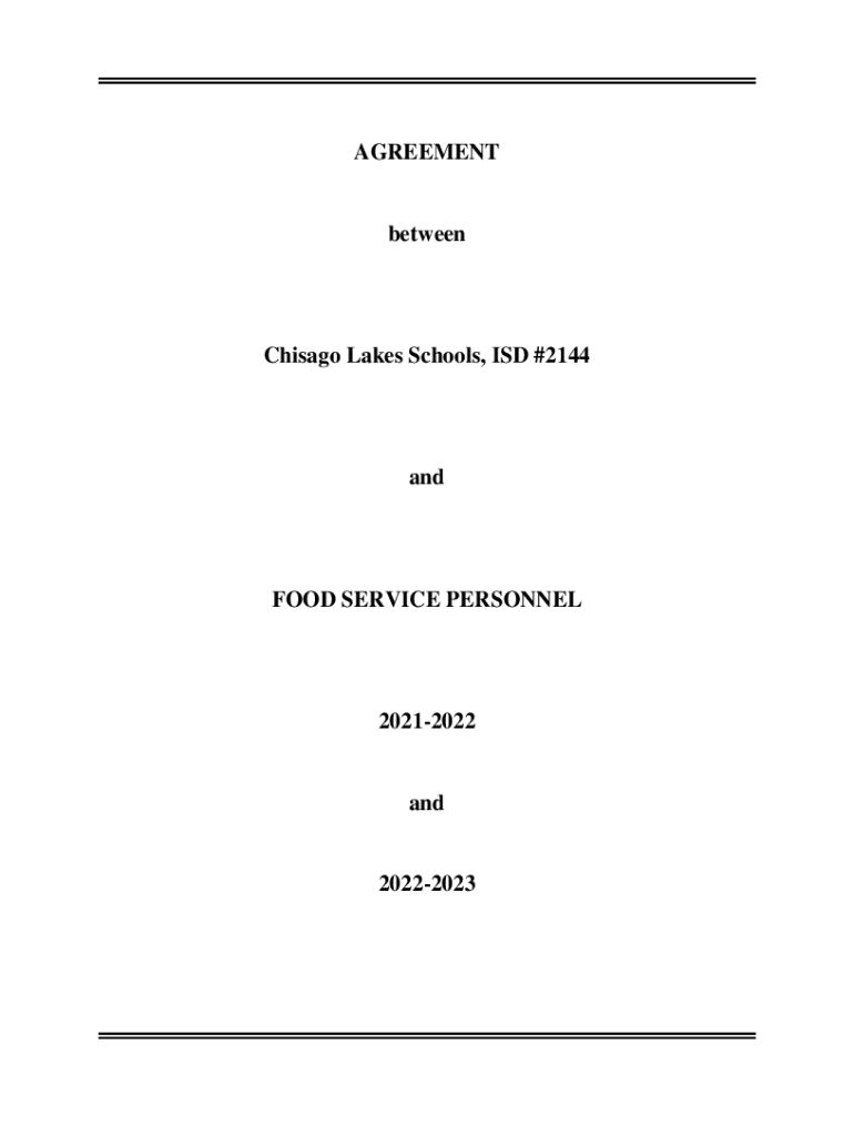 AGREEMENTbetweenChisago Lakes Schools, ISD #2144andFOOD SERVICE PERSONNEL20212022and20222023TABLE OF CONTENTS Particle I PURPOSE ..............................................................................