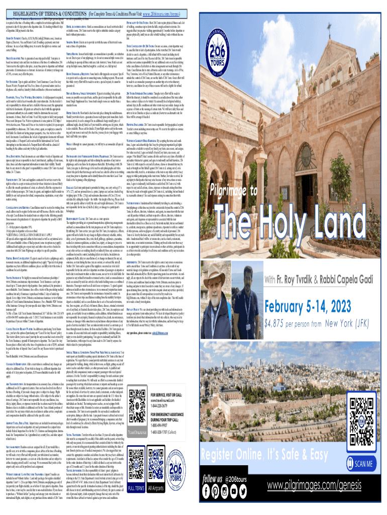 Highlights of Terms & Conditions (For Complete Terms & Conditions Please Visit w w w. 2 0 6 t o u rs. c o m / t e r m s)Deposit, Payment Schedule & Registration: A $400.00 per person deposit is required