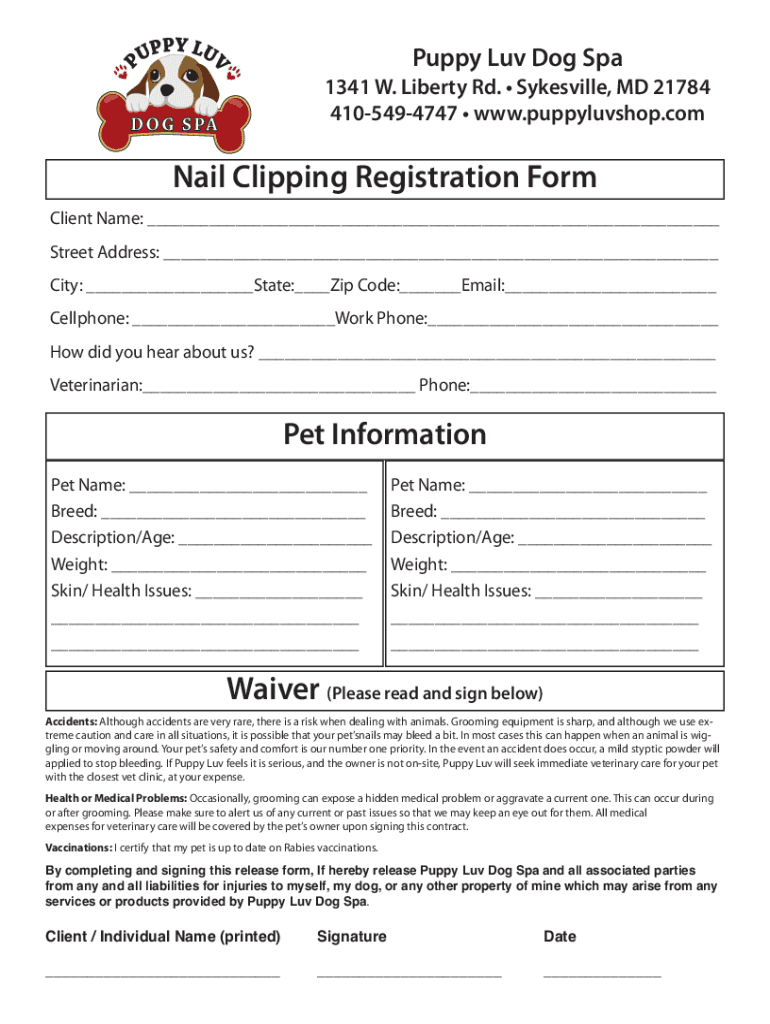 Get the free Nail Clipping Registration Form Waiver (Please read and sign ...