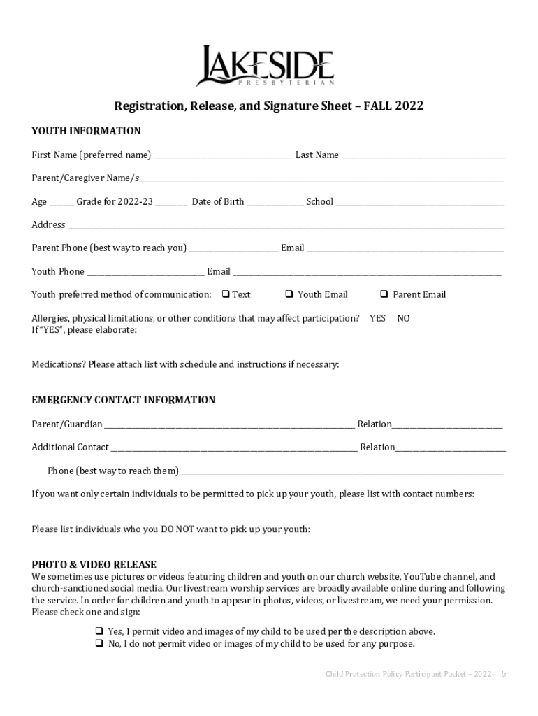Lakeside Presbyterian Church Youth Participant Packet As a part of our commitment to safety and creating an edifying environment for all participants, the Northern Kentucky Youth Group is guided by
