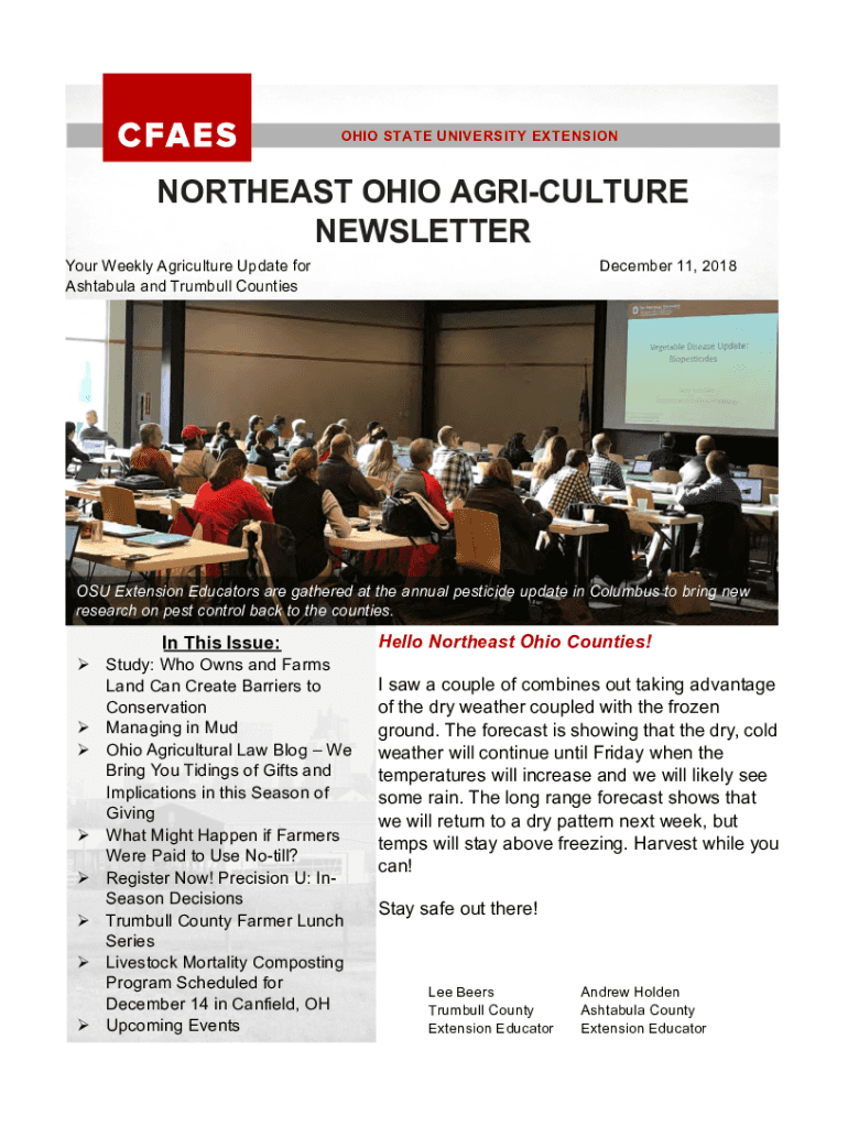 OHIO STATE UNIVERSITY EXTENSIONNORTHEAST OHIO AGRICULTURE NEWSLETTER Your Weekly Agriculture Update for Shaula and Trumbull Counties December 11, 2018OSU Extension Educators are gathered at the annual