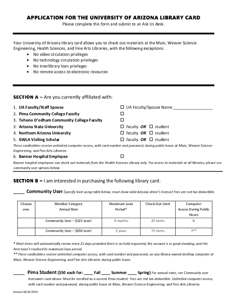 Anyone who wishes to borrow materials or access services from the ua library is required to file a library card application.