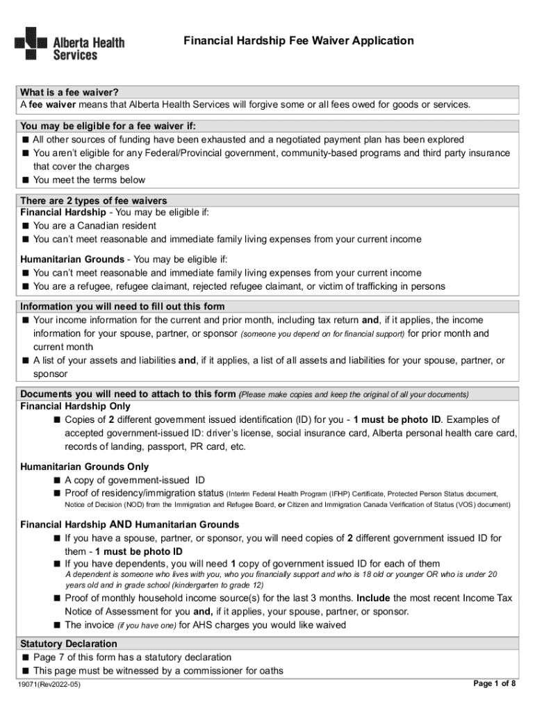 Financial Hardship Fee Waiver ApplicationWhat is a fee waiver? A fee waiver means that Alberta Health Services will forgive some or all fees owed for goods or services. You may be eligible for a fee
