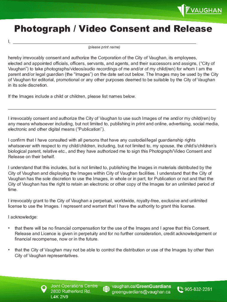 Get the free PHOTO RELEASE FORM - the City of Vaughan