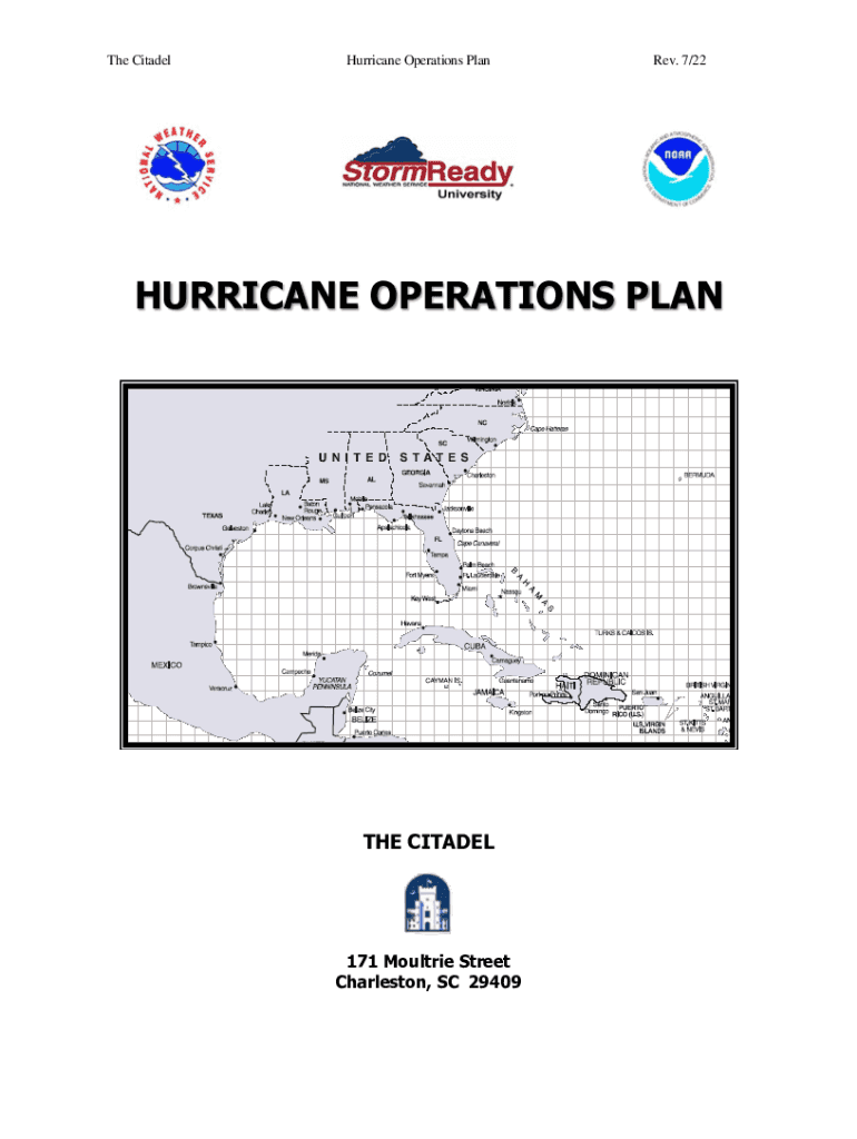 The CitadelHurricane Operations Plan Rev. 7/22HURRICANE OPERATIONS PLANT CITADEL171 Mountie Street Charleston, SC 29409The CitadelHurricane Operations Plan Rev. 7/22Hurricane Operations & Response