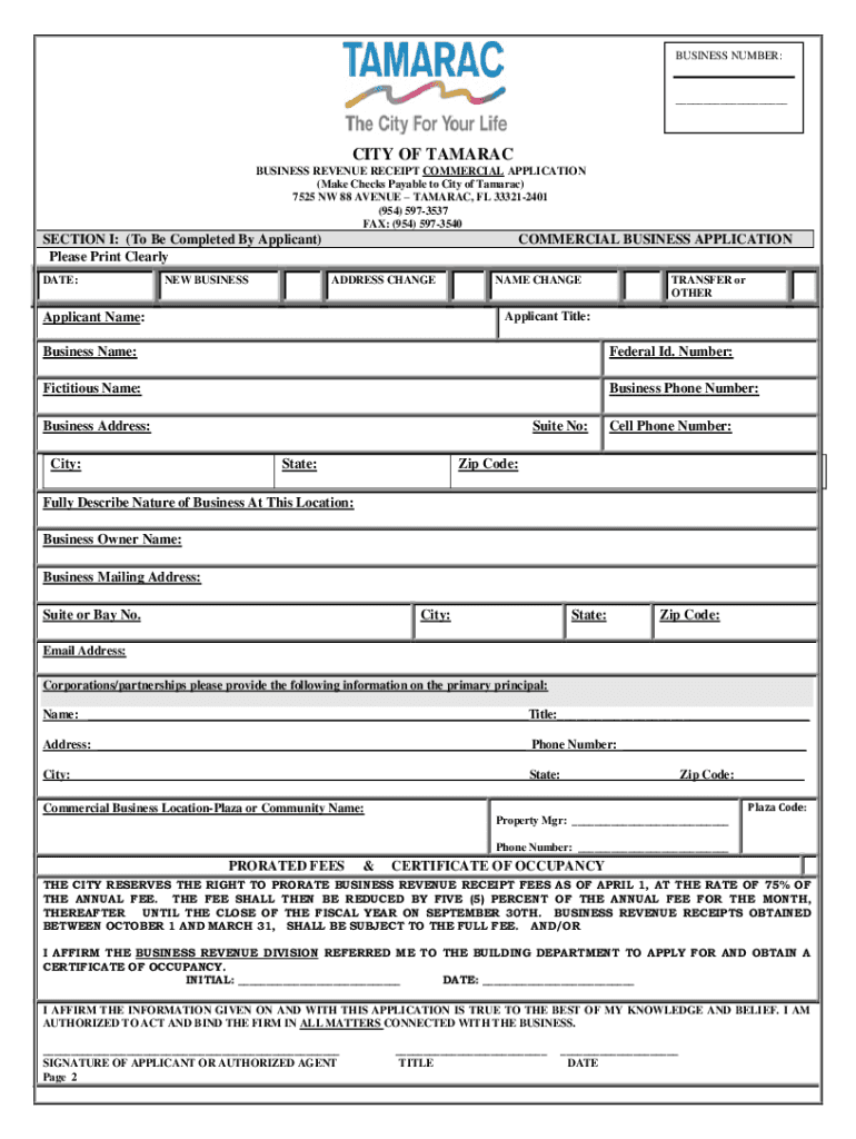 BUSINESS NUMBER:___CITY OF TAMARAC