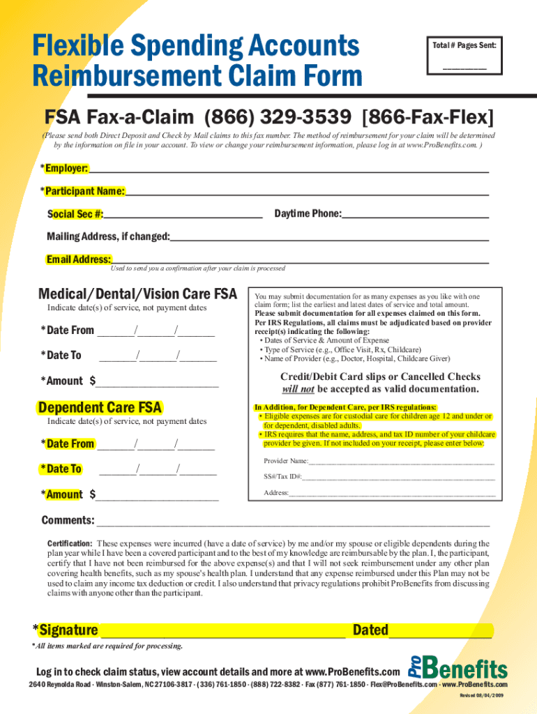 Flexible Spending Accounts Reimbursement Claim Formal # Pages Sent: ___FSA Acclaim (866) 3293539 [866FaxFlex] (Please send both Direct Deposit and Check by Mail claims to this fax number. The method