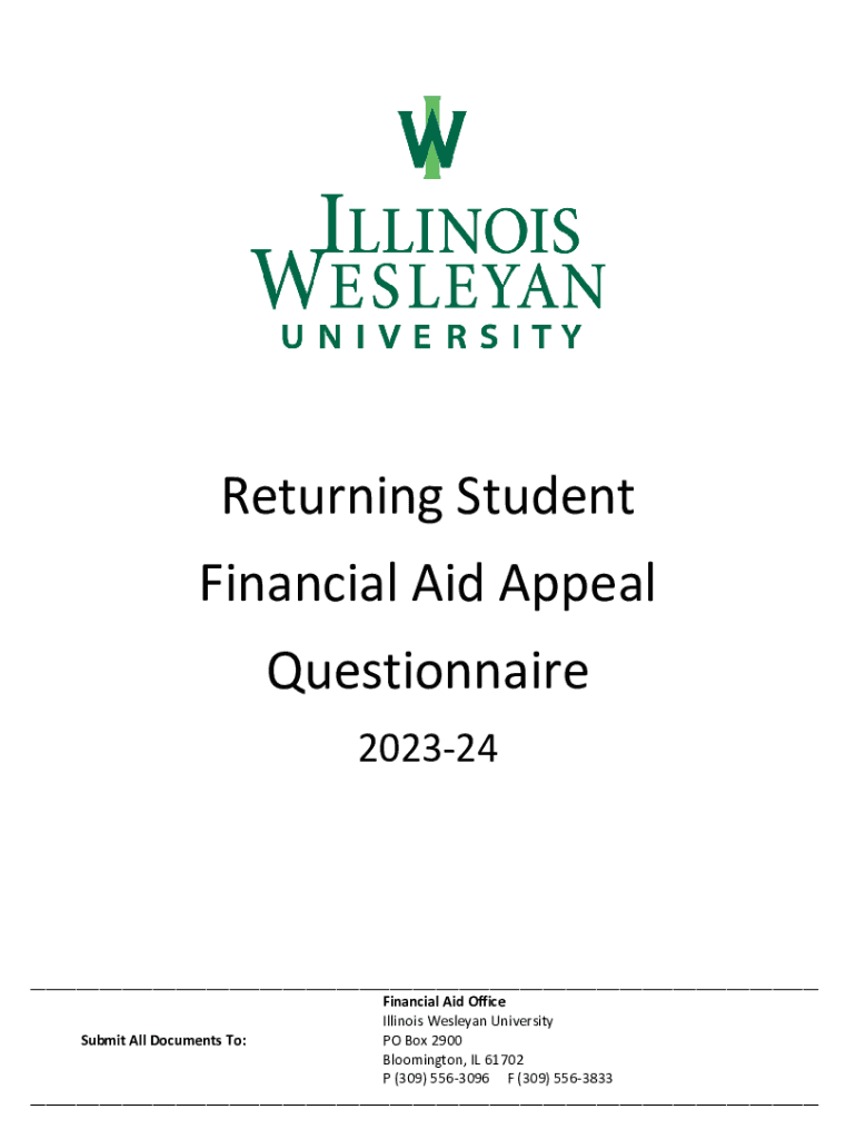 Returning Student Financial Aid Appeal Questionnaire 202324___ Financial Aid Office Illinois Wesleyan University Submit All Documents To: PO Box 2900 Bloomington, IL 61702 P (309) 5563096 F (309)