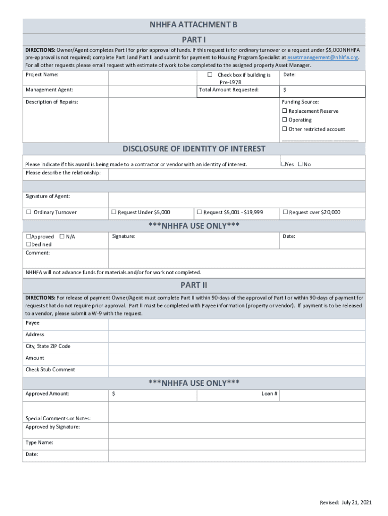 Individuals or households seeking affordable housing options in New Hampshire may need to fill out nhhfa attachment b part to qualify for certain programs or assistance provided by NH Housing Finance Authority.