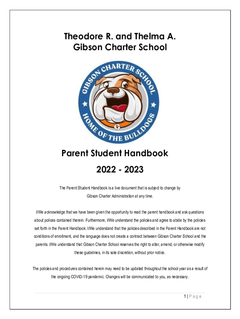 Theodore R. and Thelma A. Gibson Charter Schoolyard Student Handbook 2022 2023 The Parent Student Handbook is a live document that is subject to change by Gibson Charter Administration at any time.