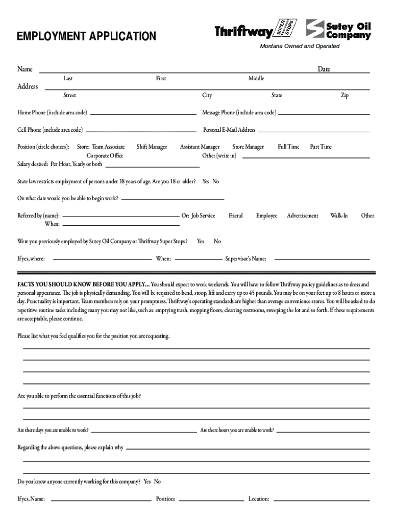 Employment Application NameAddressMontana Owned and OperatedDateCityStateMessage Phone (include area code)Personal Email AddressLastFirstStreetHome Phone (include area code)Cell Phone (include area