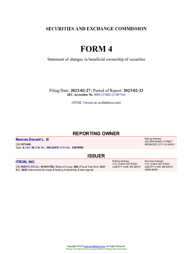 Get the free Reeves Donald L. III Form 4 Filed 2023-02-27. Accession Number