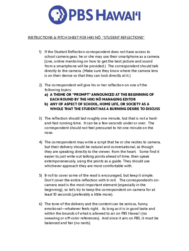 INSTRUCTIONS & PITCH SHEET FOR HIKE N STUDENT REFLECTIONS1) If the Student Re action correspondent does not have access to school camera gear, he or she may use their smartphone as a camera. (Live,