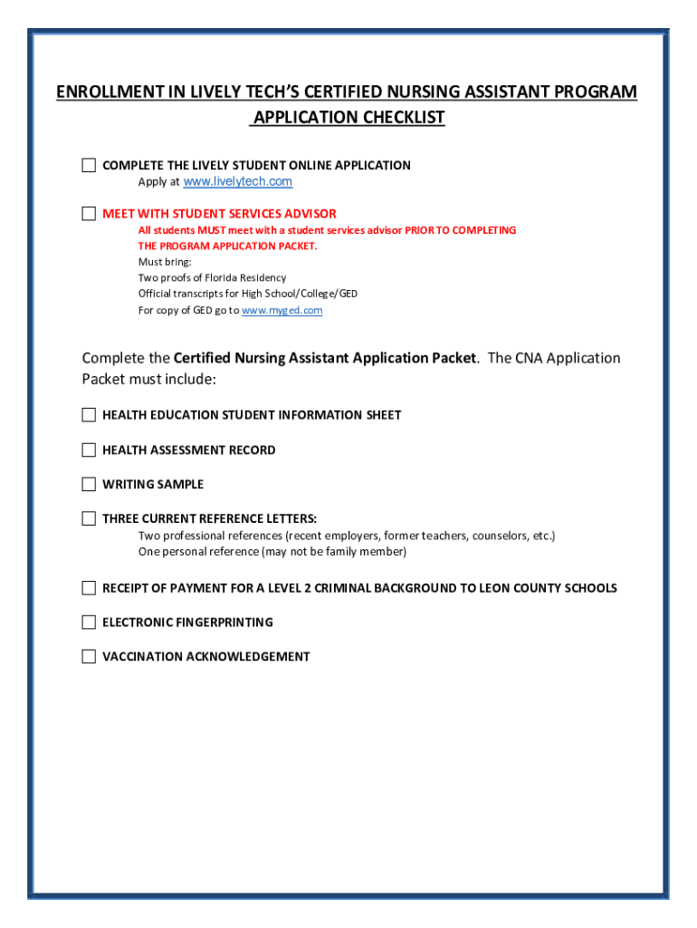 Get, Create, Make and Sign nursing assistant program application