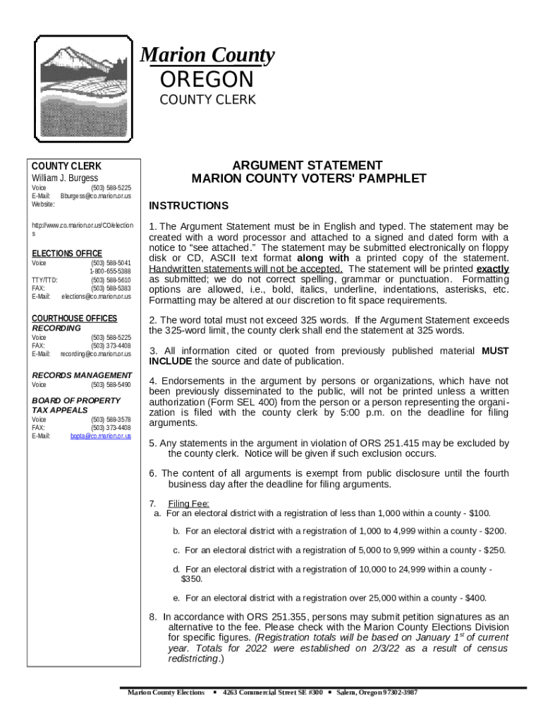 Instructions for the argument statement for county voters' pamphlet - Revize form