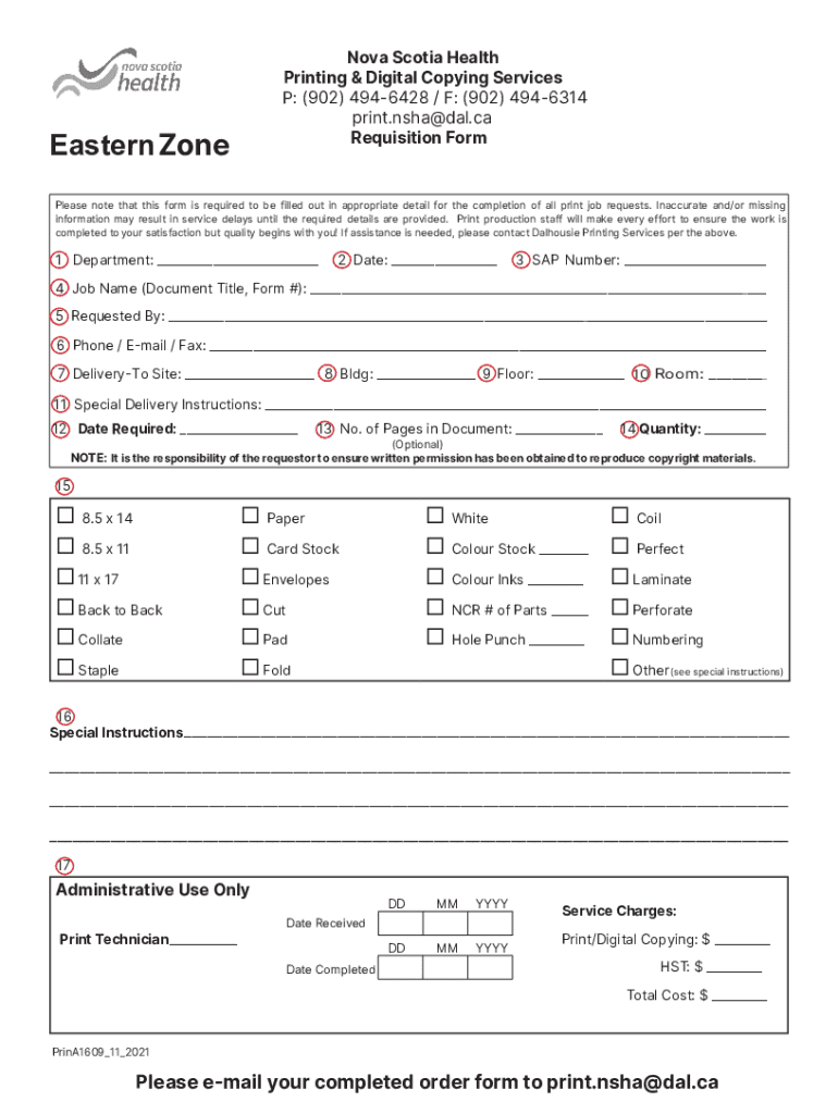 Nova Scotia Health Printing & Digital Copying Services P: (902) 4946428 / F: (902) 4946314 print.nsha@dal.ca Requisition Form Eastern ZonePlease note that this form is required to be filled out in