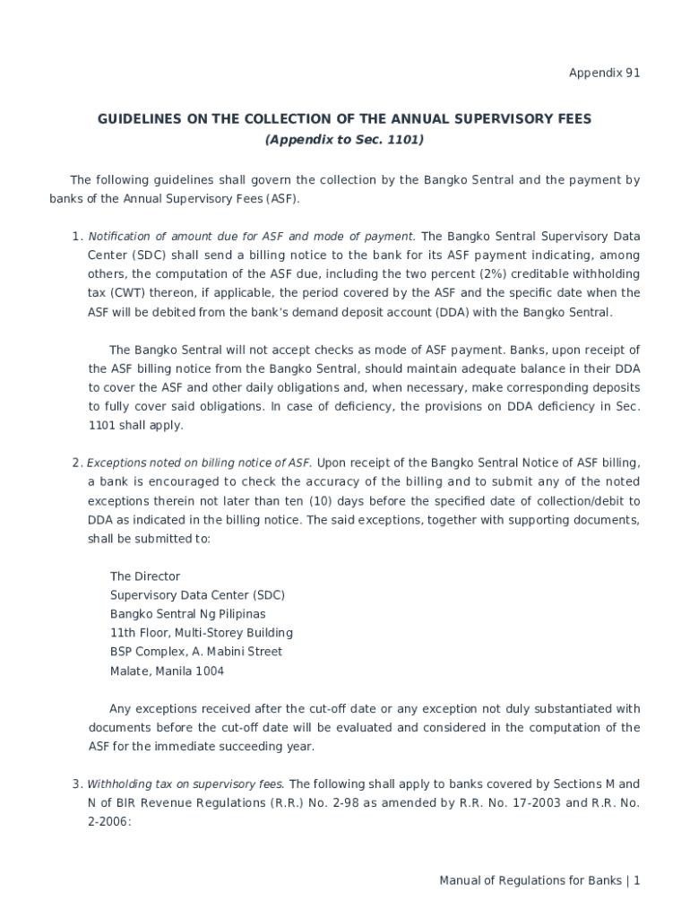 Get the free Appendix 91 - Manual of Regulations for Banks