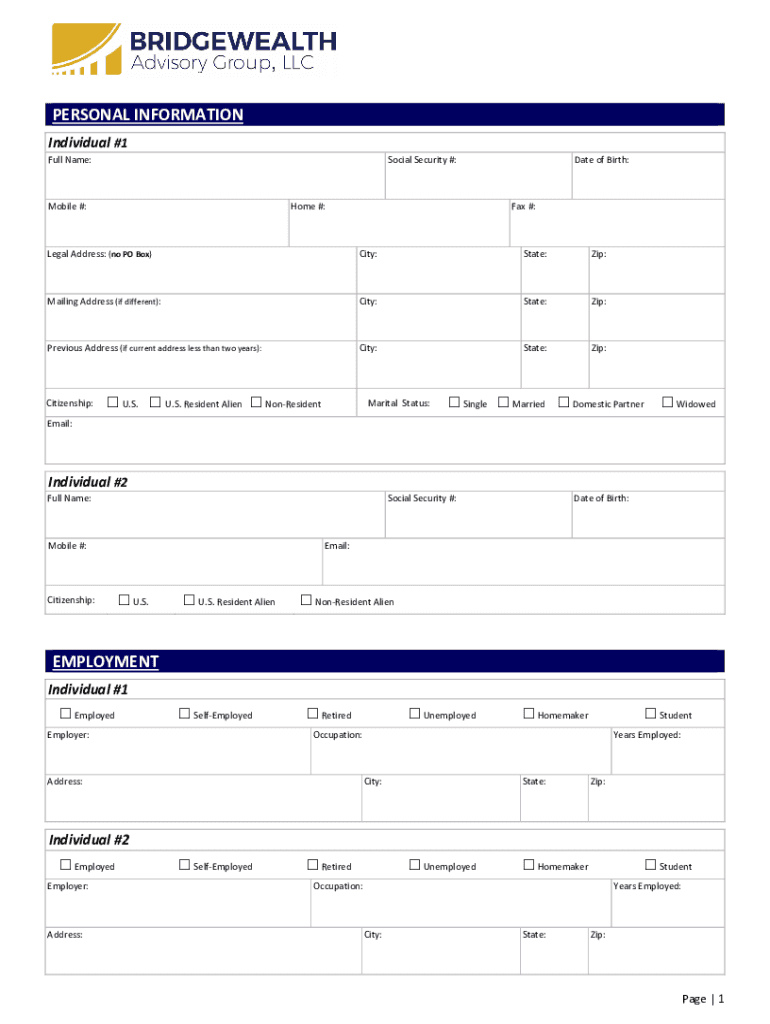 PERSONALINFORMATION Individual#1 Filename:SocialSecurity#: DateofBirth: Mobile#:Home#:Fax#:LegalAddress:(soapbox)City:MailingAddress(indifferent):City:State:Zip:PreviousAddress(ifcurrentaddresslessthantwoyears):City:State:Zip:Citizenship:State:Zip: