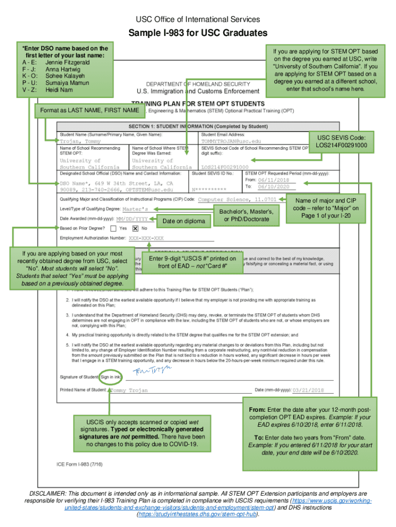 USC Office of International ServicesSample I983 for USC Graduates *Enter DSO name based on the first letter of your last name: A E: Jennie Fitzgerald F J: Anna Hart wig K O: She Player P U: Sumatra