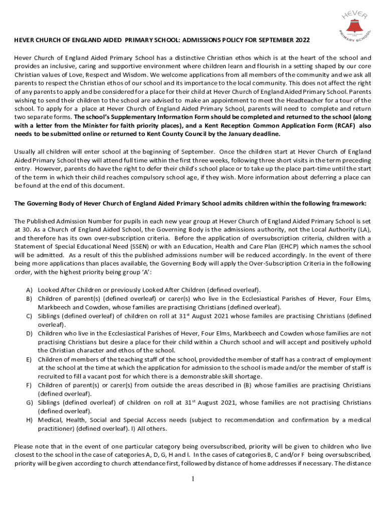 NEVER CHURCH OF ENGLAND AIDED PRIMARY SCHOOL: ADMISSIONS POLICY FOR SEPTEMBER 2022 Never Church of England Aided Primary School has a distinctive Christian ethos which is at the heart of the school