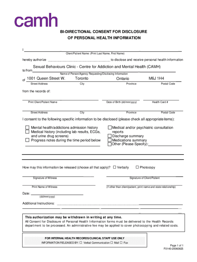 Get the free bi-directional consent for disclosure of personal health ...