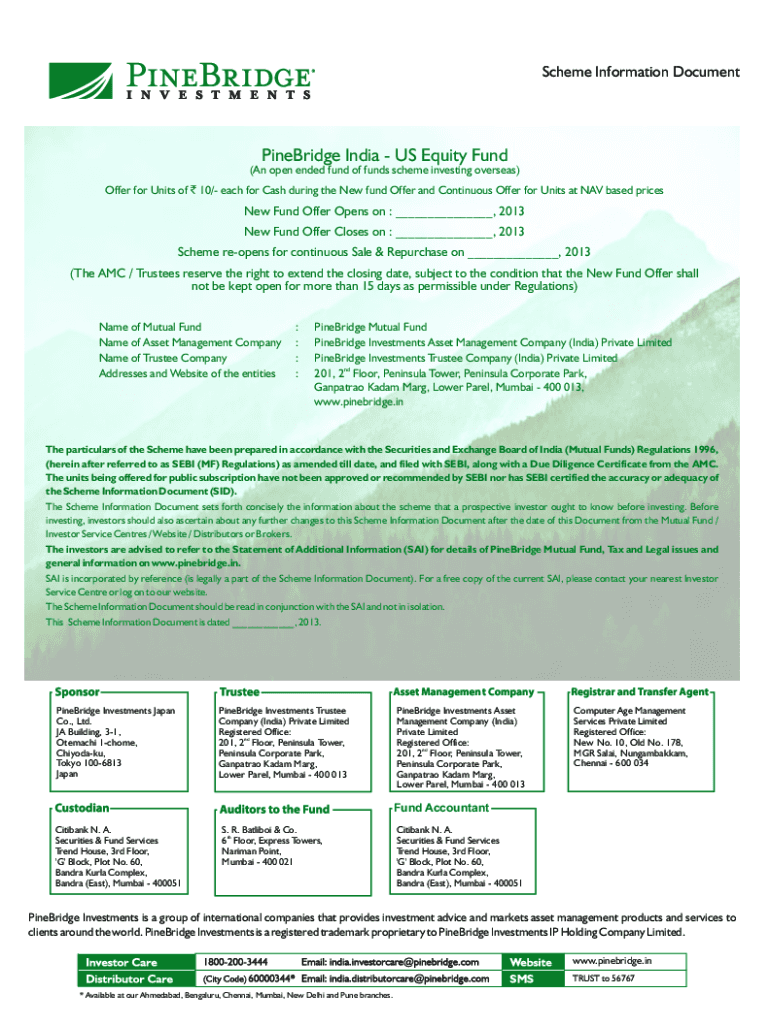 Scheme Information DocumentPineBridge India US Equity Fund(An open-ended fund of funds scheme investing overseas) Offer for Units of 10/ each for Cash during the New fund Offer and Continuous Offer