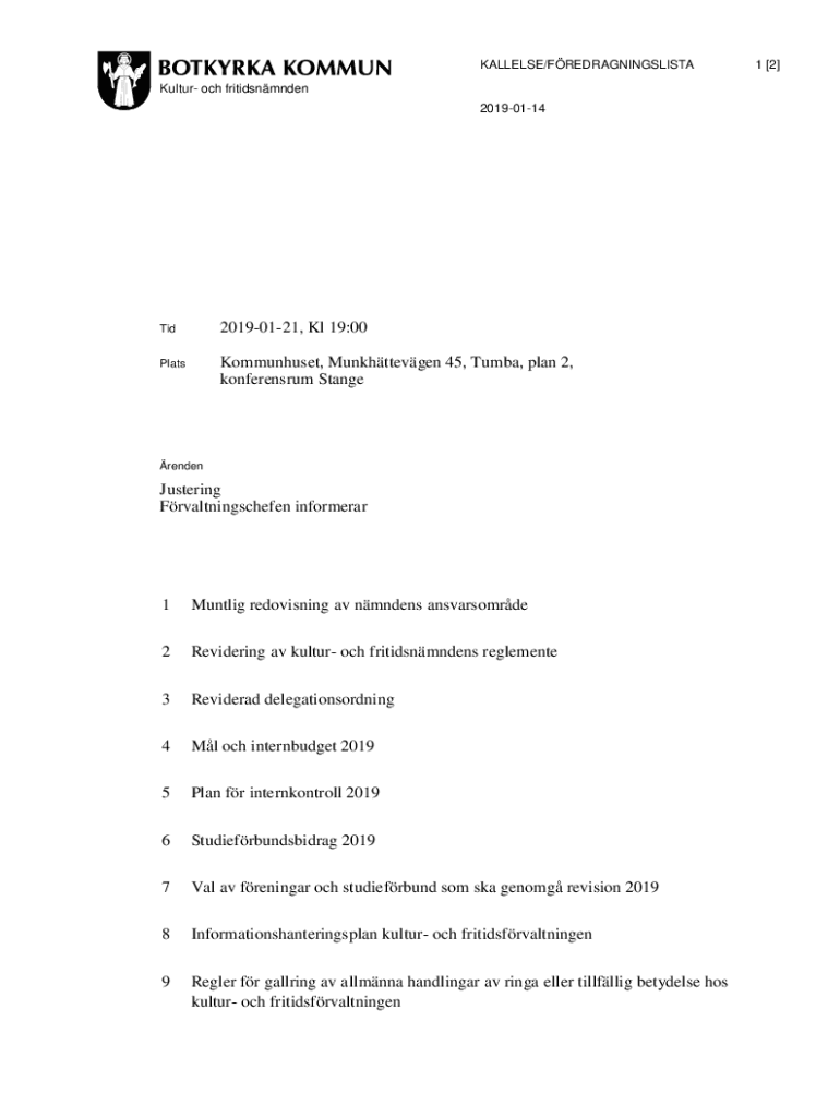 20190114Tid20190121, Kl 19:00PlatsKommunhuset, Munkhttevgen 45, Tuba, plan 2,