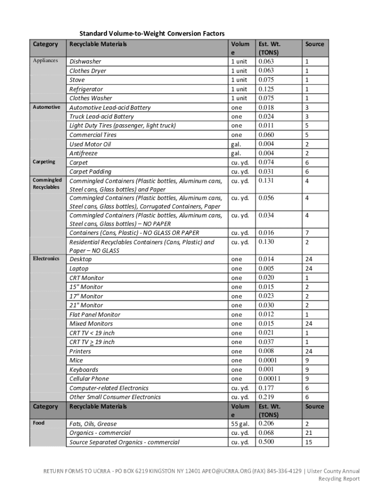 Standard VolumetoWeight Conversion Factors