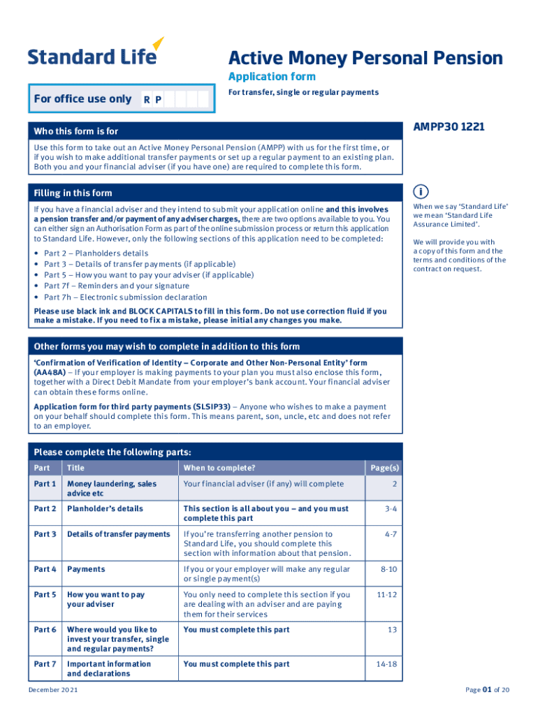 Active Money Personal Pension Application form For transfer, single or regular payments' office use only R PAMPP30 1221Who this form is for Use this form to take out an Active Money Personal Pension