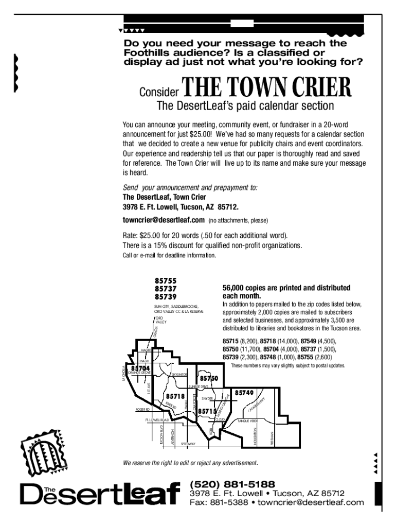 Tattoo you need your message to reach the Foothills audience? Is a classified or display ad just not what you're looking for?THE TOWN Reconsider The Deserters paid calendar section can announce your