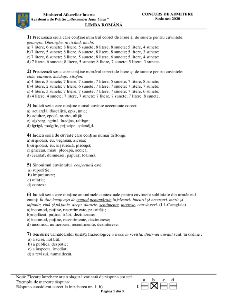 Get the free Not: Fiecare ntrebare are o singur variant de rspuns corect ...