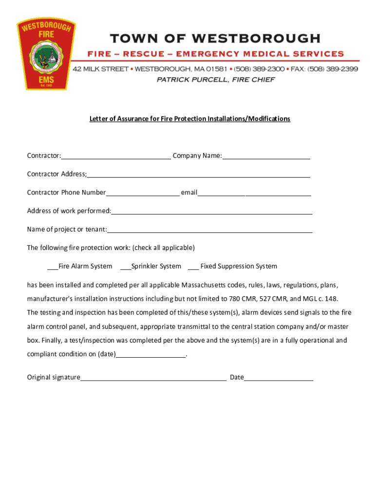 Get the free Letter of Assurance for Fire Protection Installations/Modifications ...