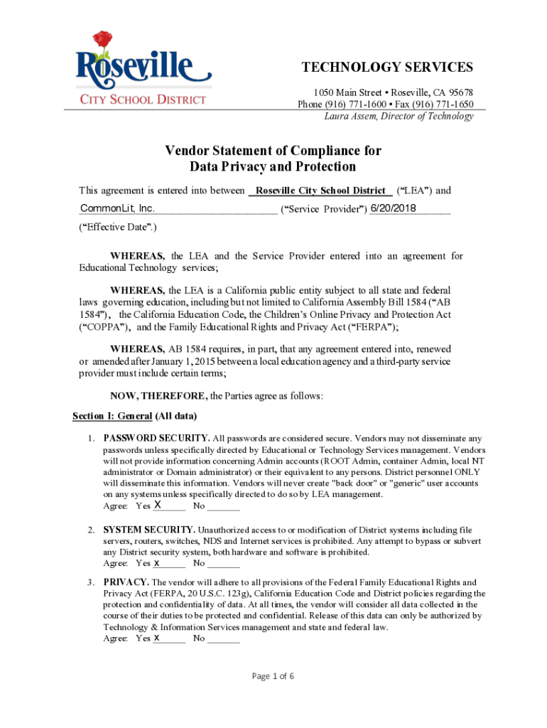 Get the free TECHNOLOGY SERVICES Vendor Statement of Compliance ...