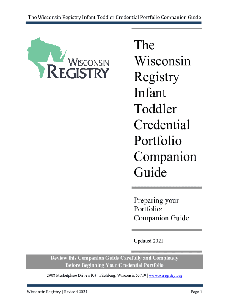 The Wisconsin Registry Infant Toddler Credential Portfolio Companion Guidance Wisconsin Registry Infant Toddler Credential Portfolio Companion Guide Preparing your Portfolio: Companion Guide Updated