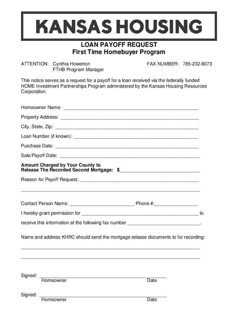 Get the free PAYOFF REQUEST - Kansas Housing Resources Corporation