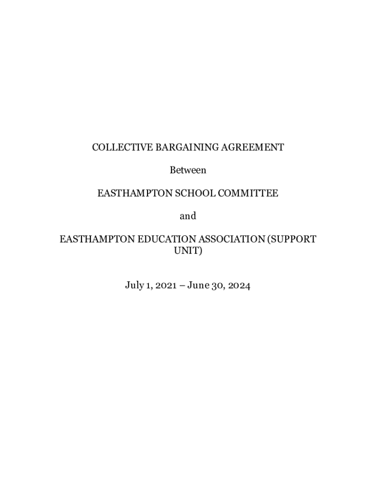 COLLECTIVE BARGAINING AGREEMENT Between SOUTHAMPTON SCHOOL COMMITTEE and SOUTHAMPTON EDUCATION ASSOCIATION (SUPPORT UNIT) July 1, 2021, June 30, 2024TABLE OF CONTENTS ARTICLEPAGEIMANAGEMENT RIGHTS