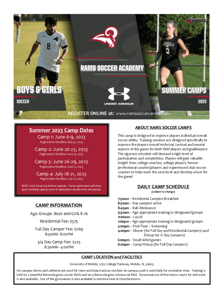 Get the free Register - Rams Soccer CampsThe University of Mobile