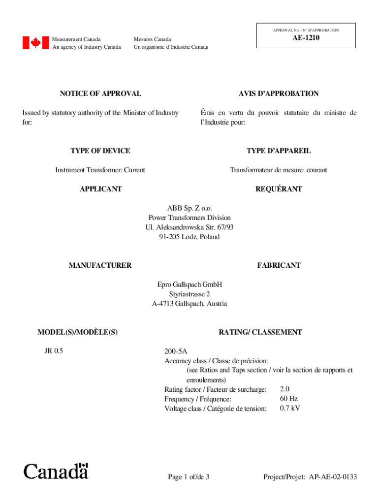 APPROVAL No. N DAPPROBATIONMeasurement Canada