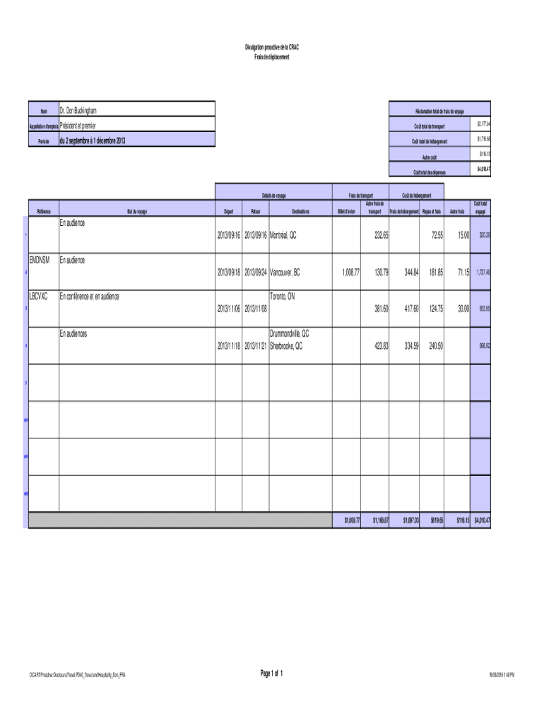 Divulgation proactive DE la CRAC Fries de dplacementNomDr. Don BuckinghamAppellation d\'emploisPrsident et premierPeriodeRclamation total DE fries DE voyaged 2 September 1 December 2013Cot total de