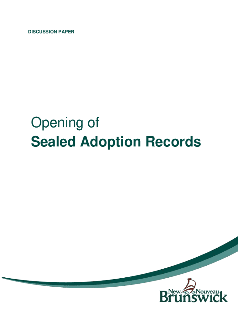 DISCUSSION Pre-opening of Sealed Adoption RecordsOpening of Sealed Adoption Records Discussion Paper Department of Social Development Province of New Brunswick P.O. 6000 Fredericton, N.B. E3B 5H1