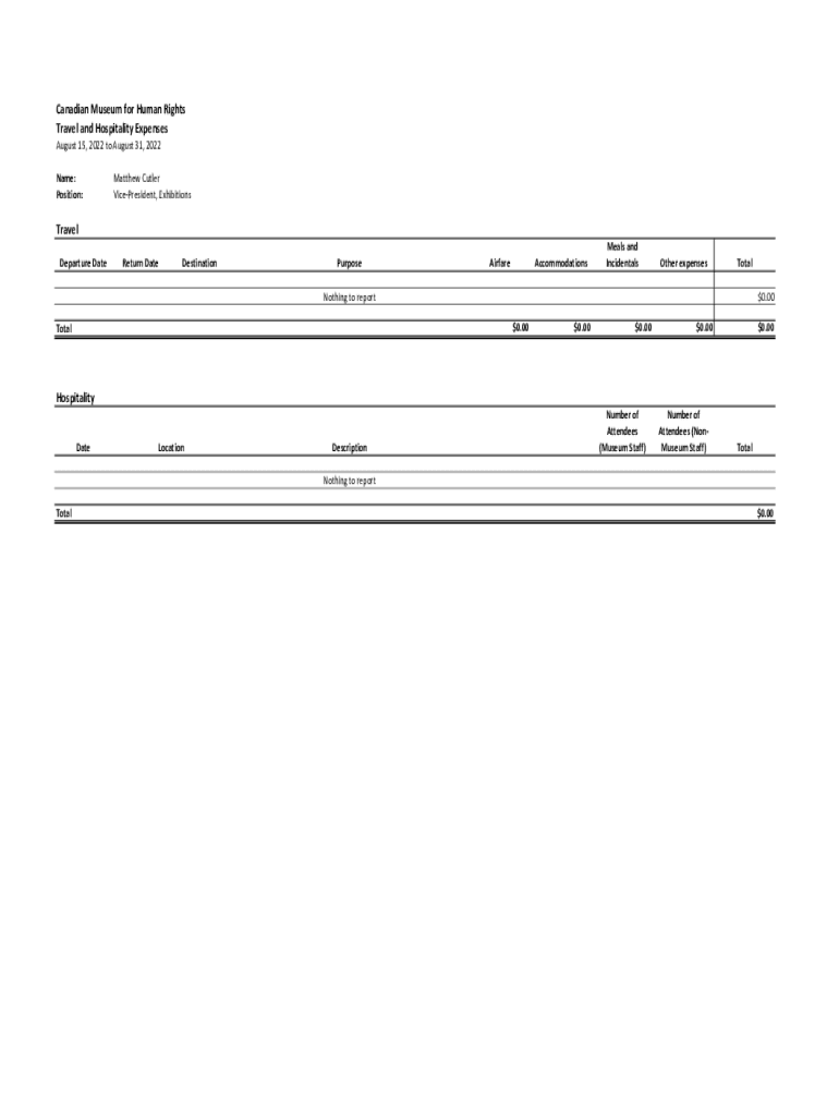 Travel and Hospitality Expenses August 15, 2022, to August 31, 2022,