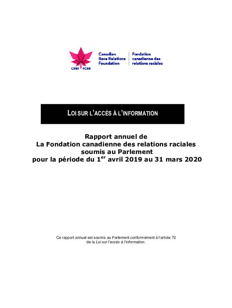 pour la pride Du 1er April 2019 au 31 Mars 2020Ce rapport annual est Louis AU Parliament