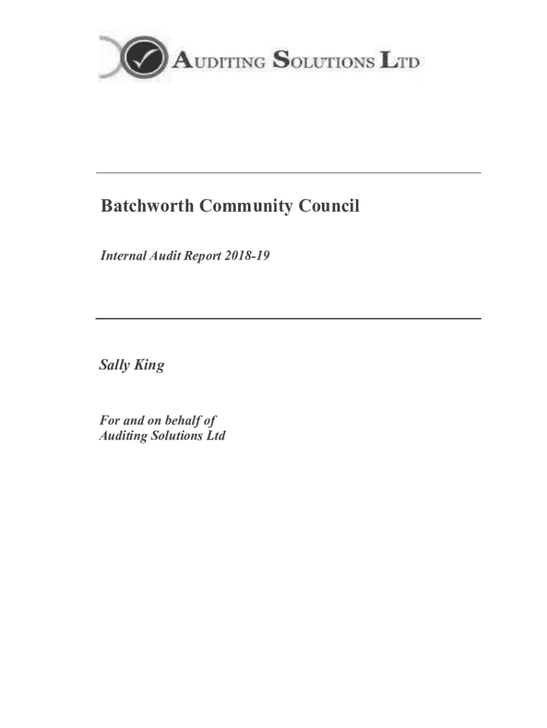 Batch worth Community Council Internal Audit Report 201819Sally King For and on behalf of Auditing Solutions Ltd2Background Statute requires all town and parish councils to arrange for an independent