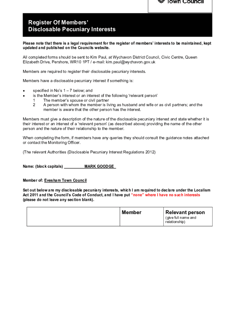 Get the free NEW Register of Members Interests form WDC.docx - eveshamtowncouncil gov