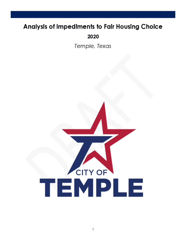 Analysis of Impediments to Fair Housing Choice 2020Temple, Texas1ANALYSIS OF IMPEDIMENTS TO FAIR HOUSING CHOICE City of Temple, Testable OF CONTENTS EXECUTIVE SUMMARY .................................................................................................