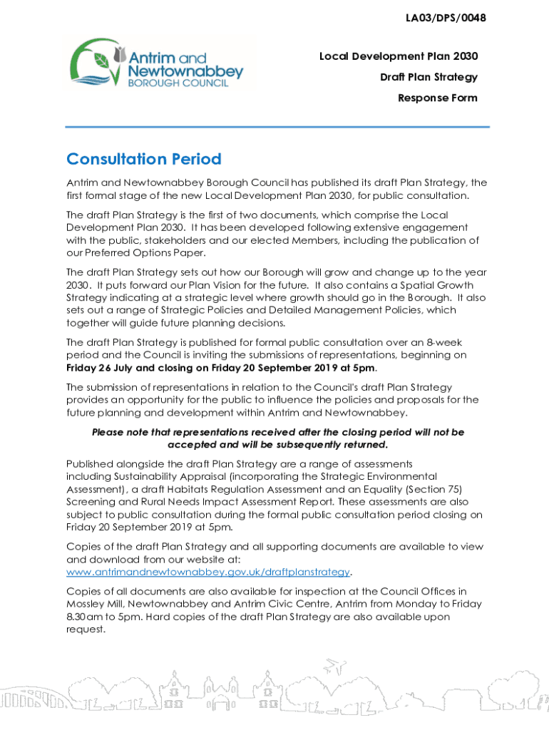 Antrum and Newtownabbey Borough Council has published its draft Plan Strategy, the